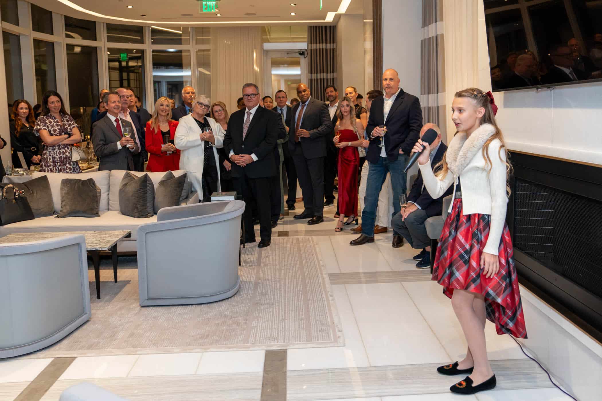 Guests enjoyed cocktails and gourmet hors d’oeuvres, including a Champagne-and-caviar station sponsored by Franny LaRue of Gourmet Galaxy. A special performance by Leeza Keegan, a student at Rosarian Academy and a member of Young Singers of the Palm Beaches, added a memorable touch to the evening.